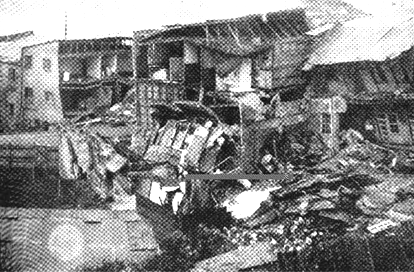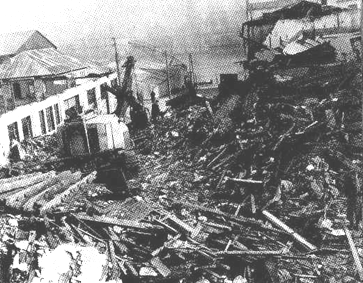 En 20 segundos apiñó al pie de la colina un montón de ochocientas casas aplastadas como cajas de fósforos. Al momento de comenzar el terremoto, algunos pescadores, arrastrando a sus mujeres y niños, saltaron a sus barcas y huyeron.