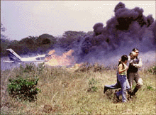 El día miércoles 02 de Junio de 1.999, aproximadamente a las 11:30 horas (15:00 GMT), la aeronave matricula YV-1196P, avioneta bimotor marca Cessna, modelo C-310, aterrizaba en la pista del Hato "Los Placemes", Municipio Mac Gregor cerca de la poblacion de Zaraza, Estado Anzoátegui, Venezuela, cuando por motivos aún no determinados se salió de la pista cayendo en la zona de protección, en la fotografía se observa como el piloto y su menor hija son auxiliados por un efectivo de la Policia Estadal que los ayudo a evacuar la avioneta al momento en que esta se incendiaba, el piloto y su joven acompañante resultaron ilesos tan solo fue un susto mayúsculo el que pasaron.