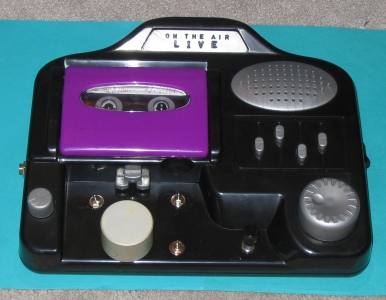 I got this for $5.00 at Odd Lots. It plays a tape, has a microphone jack so you can be the DJ and has four sound effect buttons. When you turn on the unit, 'On The Air - LIVE' lights up.