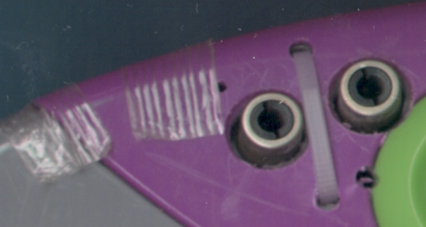 This was my third bend. I picked it up at the campus area Goodwill store. It was covered up in a box full of stuffed animals, but I found it. This one intimidated me for a very long time. My soldering skills were still not up to par and the circuit board on this was pretty tiny with not much room for making mistakes. But I managed and when I was done, I still think it ranks as one of the best sounding. When the pitch is turned WAY down, the sound effect and percussion triggers take on whole new attitudes. I had a little trouble with mounting everything in this one. When I drilled the holes for the pitch down switch and pot, I got them too close together. I was trying to get fancy and it didn't work. I forgot that I would have to put a knob on the pot (duh!) so the original knob I had on it would almost touch the switch. Not very user friendly. I sucked it up and bought some smaller knbos at RadioShack and that helped a little, but if I were to do it all over again, I'd find somewhere else to mount the pitch down mod. Additionally, the mounting of the dual RCA jacks was a complete disaster. I was still being VERY cheap and refused to buy some decent audio out jacks, so I manged the keyboard until it worked. I used a cable tie to hold it in place. Doesn't get much more cheap than that.