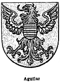 Outro brasão utilizado indevidamente como se fosse da família Alencar, é o brasão dos Aguilar. Inclusive existe na internet uma página que mostra este brasão com sendo dos Alencar, inclusive contando em poucas linhas uma história fantasiosa de um tal de João Vaz de Alencar e de Álvaro Vaz de Alencar, como tendo sido herói na batalha de Alfarrobeira. Vale salientar que em função disso, eu mesmo pesquisei em vários livros na Biblioteca Pública Estadual do Pará, a respeito da Batalha de Alfarrobeira, que realmente existiu, mas em nenhum momento encontrei qualquer citação a respeito destas duas pessoas. O referido brasão dos Aguilar é mostrado abaixo.