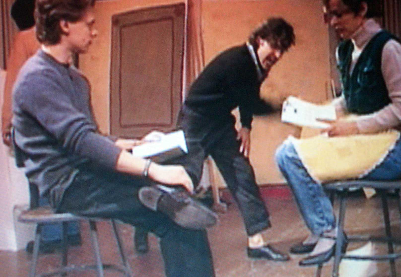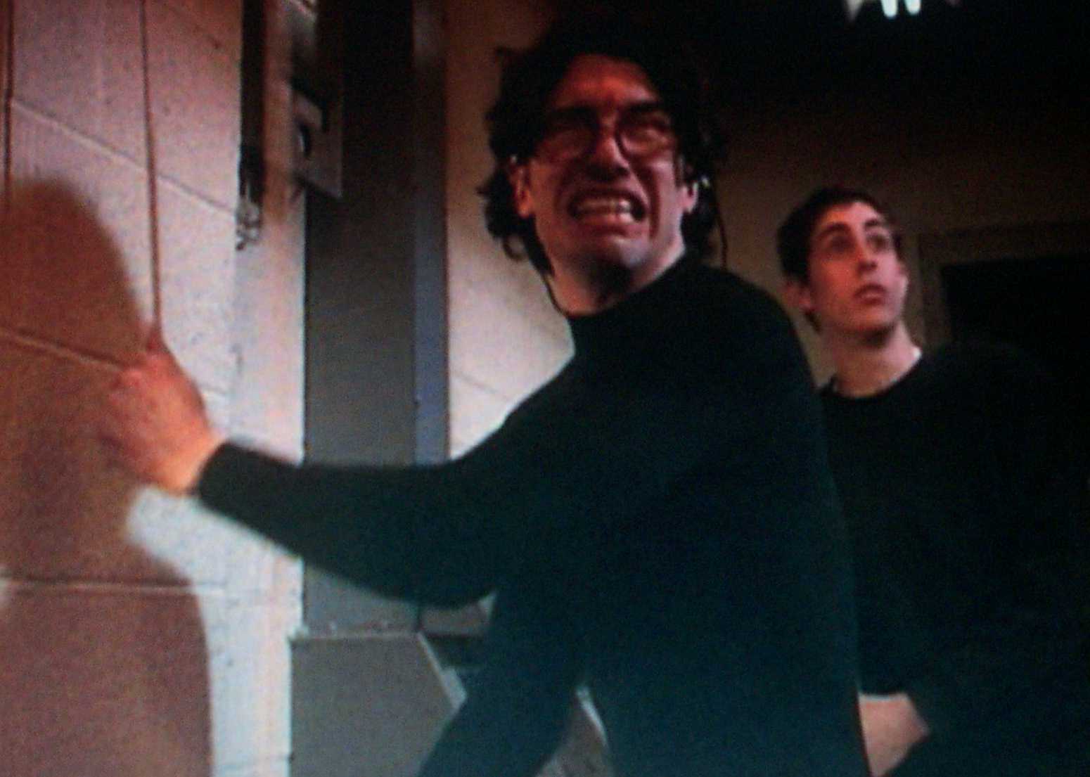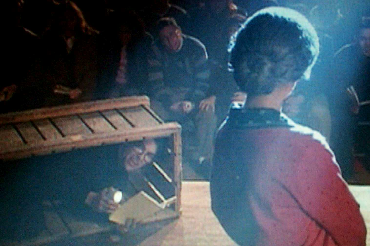 | Hiding in a crate while feeding Jerri her lines. | |||||||||||||||||||||||||||||