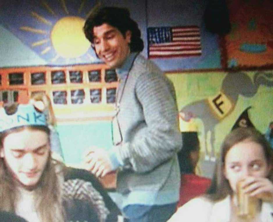 | Trying to find someone willing to sit with him in the cafeteria. |