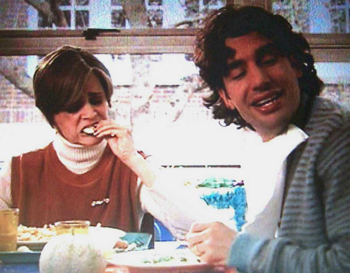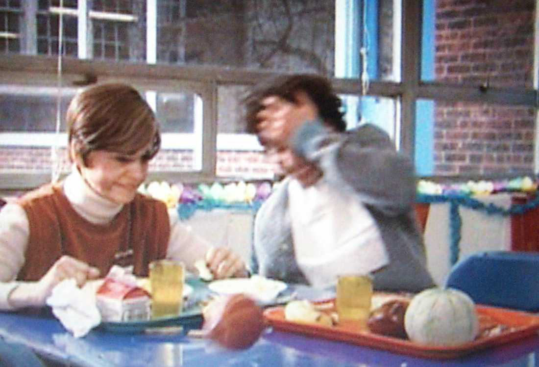 | "Good one, P-John," says Geoffrey, as Jerri eats a cucumber she stole from his plate. |