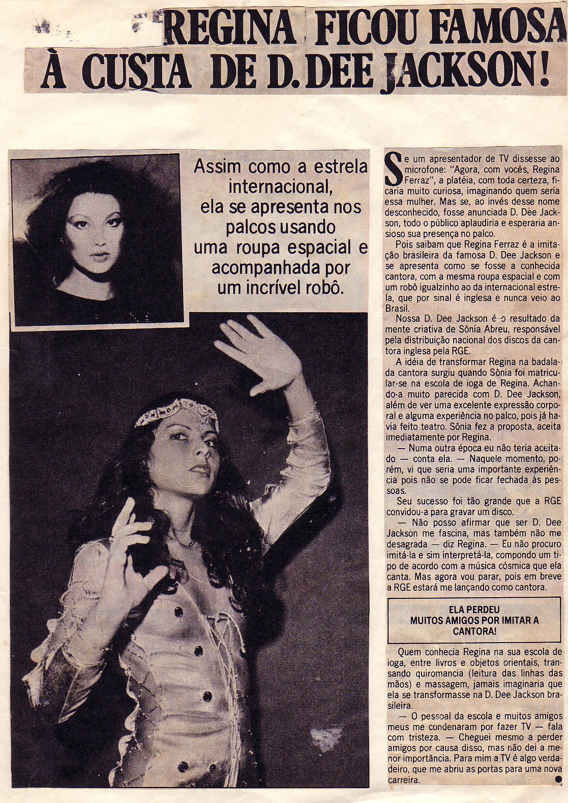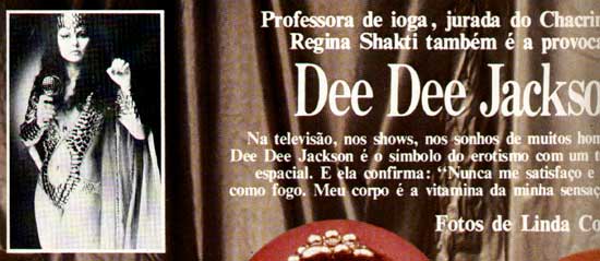 The Brazilian Dee D.Jackson took Brazil by storm, filled football stadiums all over the country and left a dream in the air. Maracana Stadium in Rio de Janeiro the largest stadium in the world with a capacity for 250.000 thousand people was an easy task for the Space Queen. Madonna, Rolling Stones, Tina Turner and other big names of international music were unable to fill the Maracana but for Dee D.Jackson it was a routine...