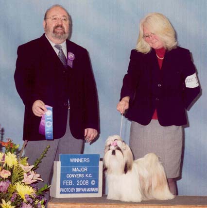| Meet Glory - Our newest 2008 Champion. She finished in 6 shows. Pictured here winning a 4 point major at her first show in Atlanta Georgia . Owner handled. Thanks Doreen for this beautiful girl. |