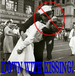 It's a simple slogan which reads, "DOWN WITH KISSING!"