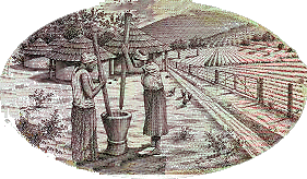 | FUFU My favorite food in Tokokoe is FUFU. It is maid of yams or cassave. They both resemble potatoes, but normally are much bigger. You have to peel them, slice them and cook them just like potatoes. But then it starts. The cooked pieces go into a wooden pot and are heavily pounded untill they become a smooth doughlike lump. That's when the fufu is ready. You just have to cook a greassy soup with it made from tomatoes, groundnuts or palmnuts and add some fish, rat, grasscutter (big rat) or chicken and voila, a 'healthy' meal. You take some of the fufu with your RIGHT hand and put it in the soup. Then you eat it without chewing. Your left hand is considered dirty, used in the toilet... Handing things, waving, pointing at someone' house with your left hand is an insult and will get you a smack from your parents! |