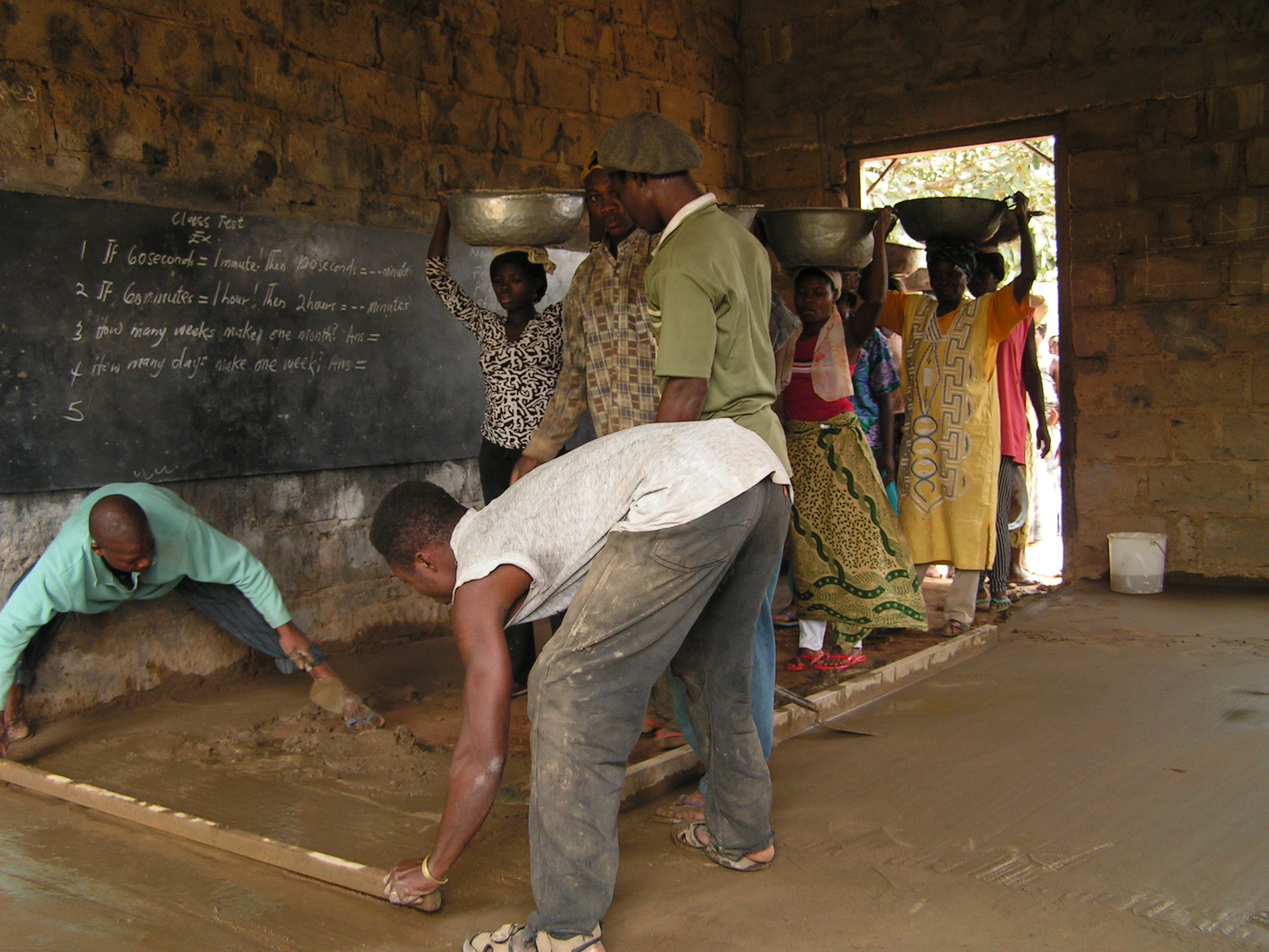 The town crier called everybody to work to finish an old classroom block that was still in rough state. Here you see masons preparing a new floor for a classroom; women bring in the cement. In another room men are making cement. There's no mill so they have to do it themselves. First sand and cement are mixed, then water is added. Hard labour! The finishing of this building is part of a bigger project funded by the Dutch embassy in Accra. It's really wonderful to see them working together, coming out in their numbers and being concerned about the welfare of their children. By the 1st of July all the projects have to be finished, so that by the beginning of the new academic year, all the children of Tokokoe can sit in their own classroom! I'm already looking forward to that day. |