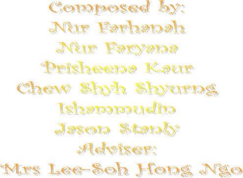 Nurul Haziqah Bte Suhaimi(10) Sufliyyati Bte Abdul Abdul Abdul Rahim(17) Ishammudin B Ramlan(31) Roy Peh Yu Cheng(42) |