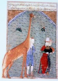 | A giraffe given to Timur by the Sultan of Egypt. The picture appears in one of the copies of the Timur Nahmeh | ||||||||||