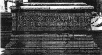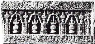 | To prove that the Kilwa marbles are from Gujarat an example from Cambay-Gujarat: the cenotaph of Umar al Kazaruni d 1333 AD. And right the mihrab of the Fakhr al Din mosque in Mogadishu. On the pictures it is off course impossible to see that the stones used are the same; but it is easy to see that the design is very similar. | |||||||||||||||
