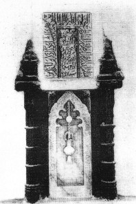 The Kilwa panel may be compared with the cenotaph of Umar al Kazaruni d. AD 1333 even the programme of Quranic inscriptions is identical. The Kilwa panels were probably made for a large cenotaph. These have been manufactured in Cambay from the late 12- hundreds on. The niche of the Fakhr al Din mosque very closely resembles the mihrab (dated Dhu al Qadah 726AH Sept- Oct 1326) of Khalis atiq Umar al-Kazaruni the freed slave of Umar al Kazaruni in Cambay. The Lar mihrab (trading town of Lar in southern Iran) only differs from the Mogadishu one in that the outer frame is executed in a different kind of stone |