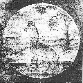 | Back to Table of Contents 5 To next page Chinese painting of a giraffe (1485) ----------------------------------------- Taken from: Laufer Berthold; The Giraffe in History and Art. The following text accompanies the painting: With the tail of an ox and the body of a deer, the animal is seen walking through the wilderness. Auspicious clouds are facing the sun, and the prosperity of the government is clearly in evidence. The people will meet with great success, and there will be a year of abundant harvest. There will be plenty of food, and with songs they will praise the great peace. |