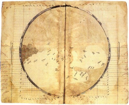 | Back to Table of Contents 4 To next page Hafiz I Abru; Jugrafiya-yi Hafiz Abru (Geography of Hafiz I Abru) (1420) Herat --------------------------------------------------- Taken from: The Miller atlas Hafiz-i Abru, his real name being Sihab al-Din Abd Allah ibn Lutf-Allah ibn Abd al-Rasid al-Hwafi. |