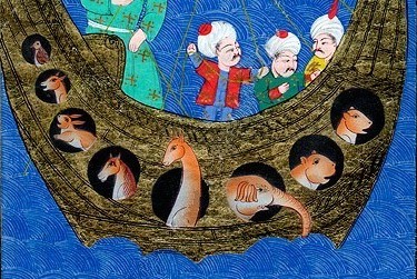 | The arc of Noa from an old Islamic mss with among the animals a giraffe | ||||||