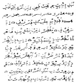 The art of writing and paper making in Madagascar is confined to one ethnic group. The Antaimoro (people of the coast) on the southeast coast. (3.4% of the population). The books deal with divination, prayers, genealogies, chronicles, and very old history. Flacourt visiting Madagascar in 1661 noted that the script existed already for 200 years. Mosa Ibin Soza compiled this manuscript in 1911. The Mss has 73+12 pages. Ludvig Munthe translated the 73 first ones. The other 12 are pure Arab text that contain no historical accounts. The 73 pages in turn exist of three parts. The first which starts with the arrival of the first Arabs in Madagascar and mentions dates up to 1910 ; it has 27 pages. The second starts on the last line of p27 up to page 68 might be older as the youngest mention is La Casa (colonial settlement on the island before it was colonized completely; 17th century). The third part starts on that same page 68 after the author has exclaimed : Ended.. .. (and a short prayer). It consists only of the story of Darafify and no indications are given on when the original copy was written. There is a chance that its roots are very old as it talks about events from the 11th century or older. The History of Darafify. We do not even know the origin of Darafify. But what he did was remarkable. He lived in the region of Sakaleo (central part east coast) It is there at Abohitsara-Feonatara, that there is up to now a statue of a wild pig in stone. Darafify went upstream on the river Sakaleo. Close to Abohibe he stops and plants bananas in the water. After that he continues to go up the river till he sees a place where the water is deep enough to cover his hand. There he makes a stone mortar to make fanamo (fanamo de hamo ; poison from the branches of a bush, which is used mostly to make fish drunk, and so to catch them). When the stone mortar got finished, he makes the fanamo, and when the fanamo is finished, he throws it in the water. The fish in the river close to Ataravondrony got drugged that way. The big murene got also drugged and crawls up to the land. There was a hollow 'haramy' tree. The murene gets into it. But when the murene is inside it, someone cuts the tree. The murene got cut in two under the weight. When the tree falls, the murex leaves. Then she passes through the water of the Sakaleo and goes south. She passes a mountain and goes back down at Imananora. From then on its name changed : Tapakena. The big eel called tona and the fish called toho still exist there. If one touches the tail of this kind of eel, the water even nowadays still becomes red. The people of the village baked the tail and eat it. All those who did, died of it. Those who did not eat it, had to bury the dead. A 120 of them died. The graves in which they were buried are still there. The ones left over left to live in Abohibe. They lived in Abohibe for two months. Then a big storm comes over them. During the night the lightning de-places everybody. They find themselves at Marosiky and are called Zafindravaratry. This is the reason why the Zafindravaratry up to today do not eat the different species of eel. Darafify was more then 100 arms long. The oldest of his family was called Ramahasiza. Then there was Darafify, then Parinatsy, then Kidivanga. The footprints of Kidivanga are still visible till today on the rock. The stone mortar in which Darafify made the fanamo is still there. That is also the reason why the name of the river got changed into Sakaleo. Darafify got buried between Madoavolo and Sahapaky. The Madoavolo are the descendants of the people of Feonatara while the Sahapaky are the descendants of the Sahadrabo. It is there that they buried Darafify. To bury him, they folded him in two. The place where he is buried on the rice fields of Rasoabe his wife and on that of his second wife Soamasay is more then 50 refy long. They build a stone wall around Darafify. |