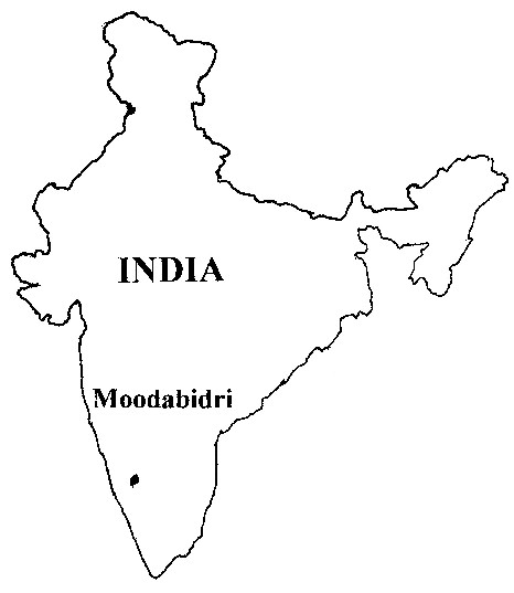 To next page Naga-la Devi (1402)Temple in Moodbidri/Moodabidiri/ Moodabidri -------------------------------------- It is a small town, about 35-km northeast of Mangalore. The most famous basidi is the 1000 pillared Chandranatha Basadi popularly known as "Savirakambha Basadi". The uniqueness is that no two pillars are identical. The devotees under the directions of the local ruler at that time - Devaraja Wodeyar of Nagamangala, built this in 1430 A.D. In 1402 Naga-la Devi, the queen of Bhairava Raja (or Bhairadevi), erected the Manastambha, a huge monolith of a height of 50 feet, in front of the basadi (Jain temple). There are elaborate carvings on the sides of the plinth of the basadi, which, inter alia, has the figures of a giraffe and a dragon; and elaborately carved figures of chauri-bearers, drummers, elephant riders... this is perhaps indicative that the Jain merchants of those days had extensive trade contacts. |