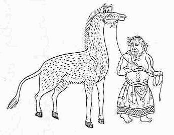 ) The book has 132 illustrations in appendix including a fu-lu = Zebra fol2r; ch'i-lin = giraffe fol2v; Hsi niu = rhinoceros fol 4r; African elephants; and lions. Note : I Yu Thu Chih (The Illustrated Record of Strange Countries) a compilation of the people and places known to the Chinese in 1430. Most probably written by the Ming prince Ning Xian Wang (Zhu Quan) in 1430. (The only known copy of the book is in Cambridge) The drawings are called: (a) A zebra (fu lu) (b) An inhabitant of the country of Black-clothed People. The description says : They hide their faces from Chinese visitors, and anyone who sees them is killed. Bargainers in trade are separated by a curtain, but one has to be careful for if the native merchants are dissatisfied with the deal one is likely to be pursued and slain. Note: On the internet several times a wrong text is accompanying these pictures saying : The gift of a zebra fu-lu is brought to a waiting Ming official. Taken from: J.R.A.S., I925, pp. 247-6I Some Foreign Birds and Beasts in Chinese Books By Arthur Christopher AC Moule Pi-p'a-lo (Berbera). The land produces lo-t'o ho six or seven tens of feet long. They have wings and can fly. They eat various things, and men even heat copper or iron red-hot and give it them to eat. They lay eggs like cocoa-nuts. If you break them they are like earthenware vessels with a musical ring. The men of the country are fond of hunting and daily shoot and eat wild animals. fol;5b Contains an illustration of a leopard which is called golden lined leopard. fol;6a illustration of; ma-ha-shou (oryx mentioned in Fei Shin) (Somewhere else the book also says under the heading Ta-shih; Arabs:) The kingdom of Hua has such things as yellow lions, white sable robes, two-footed camels (ostriches?), and wild asses with horns. The drawing of the Giraffe is taken from : I Yu Thu Chih; Moule AC Toung pao ; 1930 27, 179 |
