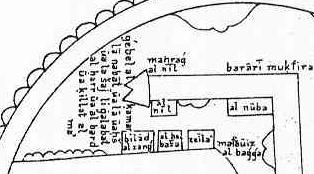 | The map above which is added as illustration only, is not from Al-Qalqachandi but from one of the many medieval copies of the manuscript of (pseudo) Ibn al Wardi and represents Africa. | ||||||