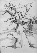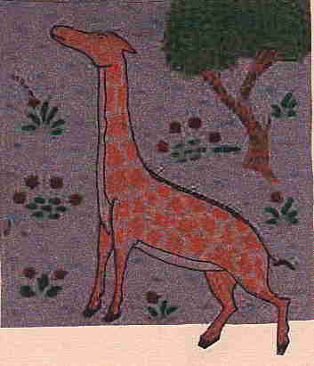 | Painting (modern)(baobab in ruins of Mandu) from Patel Virendra The Zarafar as found in the manuscript. (I redrew it by hand) The Kurkadan (Rhinoceros) is to much damaged to do this |