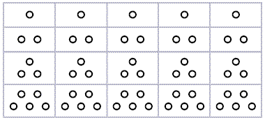 c. Los círculos de la primera fila representan la memoria y las otras filas con casilleros de 2, 3, y 5 círculos son posiciones para ubicar ayudas artificiales.
