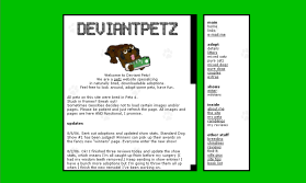 I really like the way Deviant has turned out. I mean, it's basically just a big ol' mess of downloadable adoptions, so I can just not update it for a year and people can still enjoy it for what it is. O'er the years DP has also had traditional things like shows and adoptions where you mail in requesting a pet and the owner sends it to you (I always called those "unique adoptions" and it confused people), but the downloadable adoptions have always been my favorite. I'm especially proud because there aren't many other downloadable adoptions websites of this size.