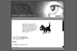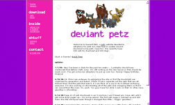 A few months after that, I decided to try a petz website yet again. I believe Deviation started coming together around 2001ish. I was going to call it "Deviation" because I wanted to devote it to finding mutations in purebred lines of petz. Unfortunately (or fortunately?), I had more fun breeding mixed petz, so I turned it into a downloadable adoptions database instead, because there was a lack of downloadable adoptions back in the day. The name got changed to "Deviant Petz" because it made for a better show title ("DP's Blah Blah Blah") and just sounded better anyway, and the rest is history. So, for all of you who have wondered why the name of the website is "Deviant Petz" when there really isn't anything deviant about it, now you know.