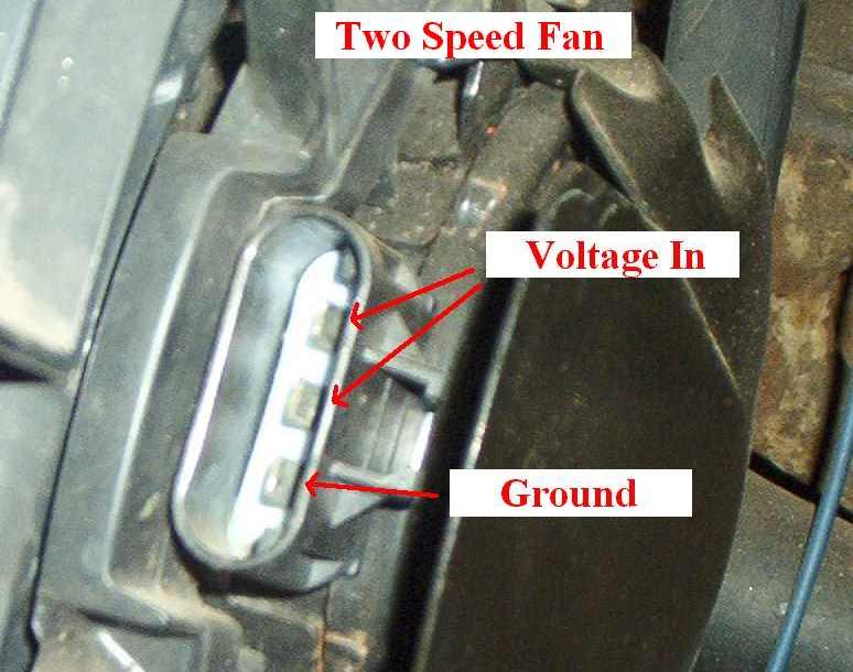 But before we discuss how to wire them you must understand how each motor needs to be wired up to run them properly. There are two fans, a single speed and a two speed fan. The single speed fan (located on the driver's side) is easy as it only has a ground and a voltage-in tab. The two speed fan has two tabs for voltage-in and one tab for ground. In order to get the fan to operate on high speed you need to apply voltage to both voltage-in tabs. For low speed just apply voltage to one of the voltage in tabs.