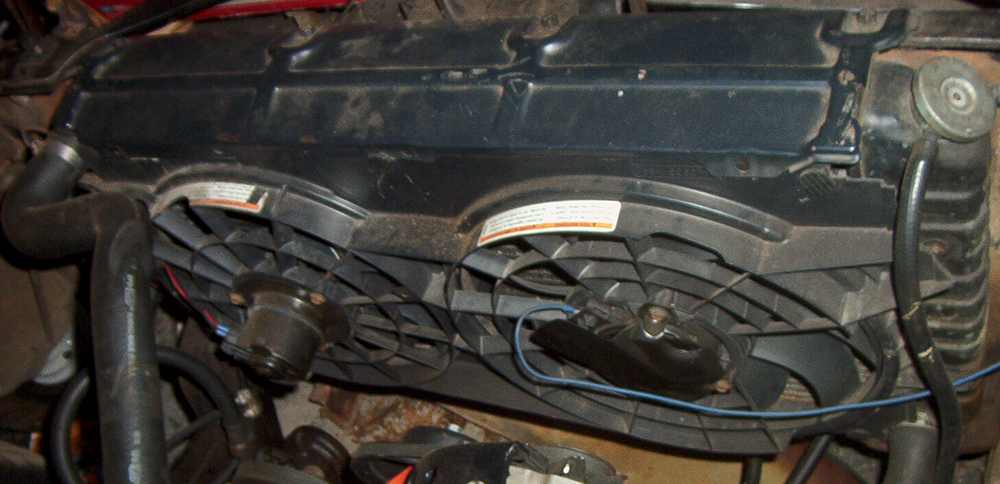After seeing some of the prices for electric fans at various stores & parts houses, that option was about to be ruled out as well, but luck prevailed as my brother and I soon discovered that Ford Windstar dual electric fans would swap easily into my car with only minor trimming.