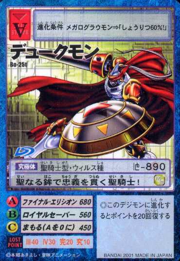 | Megalo Growmon + Win Ratio 60% | This holy knight fulfills his duty with his holy halberd! | Regain 20 points when you evolve into this Digimon. |