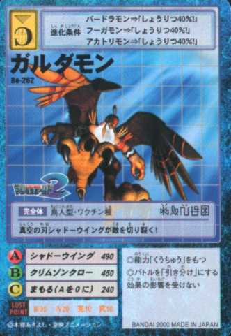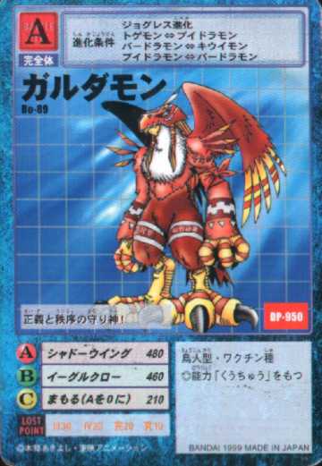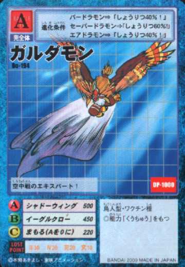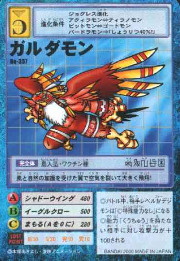 | Garudamon | Ultimate | Vaccine | Bird Man Digimon |
