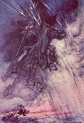 Der Wilde Jäger ist der Anführer des Geisterheeres, dem er voranreitet und dessen Zug durch die Luft er bestimmt. Er ist ein Dämon, der aus der Masse des Geisterheeres heraus gewachsen war und zu einem echten Hochgott wurde. In christlichen Ländern hat der Anführer der Geister die Entwicklung vom Dämon oder Gott zum Teufel und dann zu einer verdammten geschichtlichen Person durchgemacht. Er ist ein verdammter Toter.
