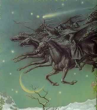 Diese Vorstellung von den Toten und ihrem Spuk ist bei allen Völkern der Erde bekannt. In europäischen Ländern wird die Wilde Jagd von jagdlustigen Rittern, grausamen Vögten oder leidenschaftlichen Jägern angeführt, die zur Strafe für Untaten, die sie zu Lebzeiten begangen haben, auf ewig durch die Luft fahren müssen. Der Mythos selbst ist aber noch wesentlich älter. Das Geisterheer war ursprünglich zusammengesetzt aus selbständigen Dämonen, niederen Gottheiten, die zu den Menschen in keiner näheren Beziehung, weder in guter noch in böser Absicht, standen. Die Toten und ihr Spuk wurden erst später zum Gegenstand des primitiven Glaubens und in den uralten Mythos hinein gedeutet.