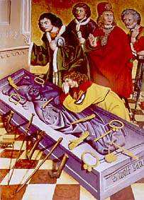 Betende am Grab des hl. Wolfgang. Flügeltafel des Hochaltars von St. Wolfgang in Pipping, um 1480