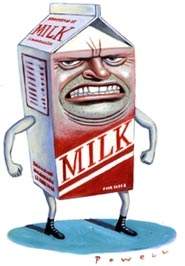 Ja, Ihr habt richtig gelesen! Und Großbritannien ist durchaus kein Einzelfall: Auch in den - einst mehrheitlich angelsächisch besiedelten - USA sind Milchspeisungen an den Schulen der meisten Bundesstaaten längst als "rassistisch" verboten, weil doch nur weiße Kinder und Jugendliche davon profitieren können - und nicht einmal von denen alle, denn inzwischen sind auch die "weißen" Völker weitgehend bastardisiert, und viele ihrer Angehörigen leiden als Erwachse an Milchzucker-Unverträglichkeit. [Wenn Ihr wissen wollt, liebe Leser, ob ein Volk "rassisch" gesund ist oder minder-wertig (Dikigoros gebraucht dieses Adjektiv wohlgemerkt nicht in böser Absicht, sondern ganz objektiv, halt um jemanden zu bezeichnen, der sich nicht voll-wertig ernähren kann), dann achtet nicht auf die Hautfarbe o.ä. Äußerlichkeiten, sondern auf das bevorzugte Getränk, da braucht Ihr keine umständlichen Blutgruppen- und DNS-Analysen!] Und in Indien - wohin einst die alten Aryer wenn nicht die Kühe, so doch deren Verehrung als heilige Tiere mitbrachten (warum wohl?) - kann heute nur noch eine verschwindend kleine Oberschicht, halt deren reinrassige Nachfahren, ein Leben lang Milch trinken; der Rest muß darauf verzichten, was umso schwerer fällt, als dort der Fleischverzehr ja verpönt ist und das Vegetariertum hoch gehalten wird. (Diese Einstellung geht übrigens den meisten der nach Großbritannien eingewanderten Indern binnen weniger Generationen verloren, aber das erwähnt Dikigoros nur am Rande.) Na - immer noch stolz? Dann tut gefälligst etwas für die Kühe, und laßt Euch nicht von verbrecherischen "Umwelt-Schützern" einreden, daß die bösen Rindviecher durch ihre natürlichen "Abgase" die Atmosfäre "vergiften", vor allem nicht von "grünen" Polit-Bonzen, die ihren Untertanen predigen, zu Fuß zu gehen oder Fahrrad zu fahren, aber selber die dicksten Dienst-Wagen mit dem höchsten Benzin-Verbrauch fahren und jede Strecke über 100 km mit dem Hubschrauber oder dem Jet-Flugzeug zurück legen. Das sind allesamt Minderwertlinge (Dikigoros verkneift sich den Ausdruck "Un[ter]menschen"), die selber keine Milch vertragen (die meisten von ihnen sind bezeichnender Weise Alkoholiker, denn dieses Gen verschwindet leider nicht zusammen mit dem für Laktose-Verträglichkeit), sie deshalb auch Euch nicht gönnen und darum die Rinder am liebsten ausrotten würden. Hängt sie auf, so lange es noch Bäume gibt; und gleich daneben diejenigen, die heute noch einem Enoch Powell nachtrauern - oder habt Ihr mal davon gehört, daß der Vegetarier geworden wäre, in der Erkenntnis, daß ihm das aufgrund seiner rassischen Überlegenheit doch so viel leichter gefallen wäre als den Unterschichts-Indern, die er so haßte? Dikigoros auch nicht. Exkurs Ende.