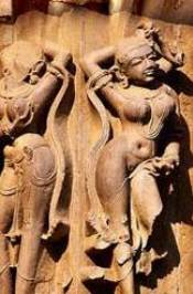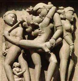 Aufmerksamen Lesern von Dikigoros Reisen durch die Vergangenheit ist sicher längst aufgefallen, daß er bei seiner Reise ins Garhwal nicht nur ein paar Jahre voraus gegriffen hat, sondern bis fast in die Gegenwart gesprungen ist - aber er hatte ja schon geschrieben, daß dies keine Chronologie seiner Indienreisen ist, sondern ein Querschnitt, der eher thematisch geordnet ist; und da er schon beim Ganges war, wollte er erstmal dabei bleiben, auch wenn er zu dessen Quellen erst ganz zuletzt vorgestoßen ist, Jahre nachdem er in Warānsī und Jahrzehnte nachdem er zum ersten Mal in Kålkattā war. Chronologisch besuchte Dikigoros nach Warānsī - wie einst Melone - Kajurāho. Es ist (oder war jedenfalls damals noch) ein idyllisches Städtchen, nein ein Dorf; privater Autoverkehr ist verboten (Dikigoros schafft es trotzdem irgendwie, ein Kurierdienst nimmt ihn und zwei polnische Pärchen, die auch keine Lust haben, noch länger auf den Bus zu warten, gegen einen kleinen Aufpreis mit), Bahnanschluß gibt es nicht, und der kleine Flughafen ist einstweilen still gelegt, denn es ist keine Saison. Die Hotels sind leer, die meisten Restaurants haben geschlossen, kurzum, Dikigoros hat das Städtchen fast für sich alleine, denn die Polen klappern nur einmal kurz die westlichen Tempel ab und fahren dann gleich weiter - wer weiß, wann der nächste Kurier-Jeep hier vorbei kommt! Die weniger populären, da weit verstreuten Ruinenfelder im Osten besucht sowieso kaum jemand - Dikigoros läßt sich von einem jungen Einheimischen führten, der ihm auch gleich das einzige Restaurant am Ort empfiehlt, wo es Spaghetti und Maccaroni arrabiate gibt. (Der Inhaber hat - wie der Staatschef - eine Italienerin geheiratet, die Dikigoros freilich nie zu Gesicht bekommt, obwohl er ein guter Kunde ist: er bestellt immer gleich zwei Portionen, weil die so knapp bemessen sind - ein Ort für Gourmets und Gourmands ist Khajurāho nicht.) Die Tempel im Westen sind eingezäunt, der Eintritt kostet 1 Rp. [5 Pf], incl. Museum (ob sich das amortisiert?), bis auf einen kleineren ganz vorne links, der kostet nichts, aber er ist auch nicht "echt", sondern dient zur Abzocke auswärtiger Touristen: Wer sich hinein traut, wird gleich mit offenen Armen und Händen empfangen, man versucht, ihm einen Blumenkranz à la Hawaii umzulegen, und wenn man will, kann man sich vom "Pandit" ganz privat eine Pūjā inszenieren lassen. So ein Affentheater, denkt Dikigoros - ja, diese Tierchen gibt es hier auch; sie kraxeln auf den Tempeln herum, zusammen mit muslimischen Touristen, die noch nie die Abbildung einer nackten Frau aus der Nähe gesehen zu haben scheinen, denn sie sind ersichtlich nur deshalb gekommen. Wenn sie das Freilicht-Museum wieder verlassen, werden sie am Ausgang schon erwartet, von halbwüchsigen Knaben mit schmuddeligen Ansichtskarten mittelprächtiger Schärfe und Farbqualität, die "Kamasutra" betitelt sind; aber sie passen überhaupt nicht zu den Tempeln: Deren Erbauer hatten im 11. und 12. Jahrhundert ein ganz anderes Frauen-Ideal: hoch gewachsen in Saft und Kraft, schlank, aber nicht zu dünn, große, pralle Brüste (manchmal könnte man meinen, daß die damals schon Silikon gekannt hätten!), sauber epiliert und allenfalls mit einem schmalen Gürtel bekleidet, zeigen die Reliefs sie in mehr oder weniger pikanten, oft sportlich-artistischen Posen und beim "Mithun" [Geschlechtsverkehr in allen seinen Spielarten]. Die Bilder dagegen stammen aus der dekadenten Muģal-Zeit: schräge Klappergestelle, immer halb bekleidet, auch beim Sex (meist mit dunkelhäutigen, häßlichen Arabern in unbequemen, überhaupt nicht anregenden Stellungen), so richtig was zum Abgewöhnen...