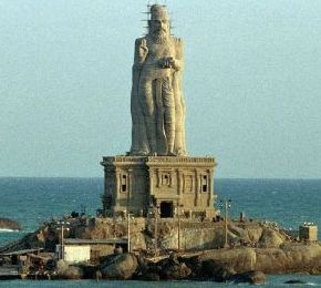 ![[die beiden Inseln vor der Küste des Kap Komorin: links der 'Wiwekanand-Felsen' mit dem Memorial auf den bengalischen Swami, rechts das Denkmal auf Thiruwalluwar, den Dichter des tamilischen Nationalepos Tirukkural]](kanyawiwekthiru.jpg)