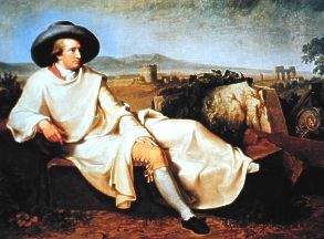 Doch die Reise wird ein voller Erfolg: Johnny stößt sich mit Ende 30 endlich die Hörner ab - ein Autor des späten 20. Jahrhunderts spricht in wohl gesetzten Worten von einer "Entdeckung der Sinnlichkeit, der Natur- und Kunstschönheit ebenso wie der eigenen Sexualität." Aber warum muß es denn nur das sein? Wer weiß, wie viele Ideen zum "Faust" er seiner italienischen Maitresse "Faustine" verdankt?! Gut gelaunt kehrt Johnny zurück nach Weimar. Dort tischt er lauter Märchen auf, was für tolle Sehenswürdigkeiten er in Italien aufgesucht und gefunden habe - und alle fallen drauf rein. Dreißig Jahre später schreibt er auch ein Buch darüber mit dem Titel "Auch ich in Arkadien" (obwohl er da nie war, denn das liegt wie gesagt in Griechenland; aber immerhin hat man ihn Spaßes halber in die römische "Gesellschaft der Arkadier" aufgenommen), das allerdings nicht so umfangreich wird wie das seines Herrn Vater (obwohl er sich noch länger Zeit läßt als der - die Endfassung erscheint erst 1829, also 42 Jahre später, unter dem Titel "Italienische Reise"), geschweige denn ein Bestseller wie der - ebenfalls in Italien spielende - Räuber-Roman "Rinaldo Rinaldini" seines künftigen Schwagers Chris Vulpius. (Johnny hat zu Lebzeiten alle drei Ausageben seiner "Gesammelten Werke" aus eigener Tasche bezahlt und dabei immer kräftig Verlust gemacht - die Schuld daran gab er stets seinem Verleger Cotta; aber der konnte schwerlich etwas dafür; kaum jemand wollte das damals kaufen, geschweige denn lesen. Erst die Nachwelt sollte unkritisch alles, was er geschrieben hat - auch das, was er in späteren Jahren selber als "Schund" bezeichnet hat - zum "Meisterwerk" hoch jubeln. Vulpius' "Rinaldo" hat sich zu Lebzeiten der Autoren besser verkauft als alle Werke Goethes zusammen.) Über den eigentlichen Zweck seiner Reise schreibt er da freilich nichts, obwohl das Buch eigentlich mehr von ihm selber handelt als von Italien. Aber er schreibt ein Gedichtchen, das wohl nicht zuletzt deshalb so populär wurde, weil es nicht so lang war wie etwa "Die Glocke" seines Zeitgenossen und Freundes Fritze Schiller und daher leichter auswendig gelernt werden konnte. Es war das Lieblings-Gedicht von Dikigoros' Deutsch-Lehrer, und er kann es heute noch zitieren: