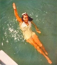 Zurück in den USA sagt Eleanor Holm dem Wettkampfsport und seinen Funktionären "l.m.a.A." und konzentriert sich ganz auf das Show-biz - und auf ihre Ehemänner. Im Januar 2004 wird sie mit 90 Jahren das Zeitliche segnen - und mehr Nachrufe erhalten als alle anderen Amerikanerinnen, die 1936 nach Berlin gereist sind und auch tatsächlich an den Olympischen Spielen teilnehmen durften, zusammen. Als die letzte Mohikanerin, pardon Medalistin unter den Schwimmerinnen, Leni Henze-Lohmar, in der Silvesternacht des Jahres 2006 die Augen schließt, wird dagegen kein Hahn mehr nach ihr krähen - außer Dikigoros, der einen kleinen Nachruf für die Vereinszeitung verfaßt. Aber das ist ja auch ein ganz fascistoïder Verein, der wahrscheinlich einzige in der BRD, an dessen Trainingsstätte noch eine Bronzeplakette hängt, die an die Mitglieder erinnert, "die im Weltkrieg 1939-1945 ihr Leben fürs Vaterland geopfert haben". Wenn das die politisch-korrekte Obrigkeit spitz bekäme, würde sie den Verein sicher gleich verbieten, und im Schwimmbad würde statt dessen eine Plakette für Deserteure und/oder Nichtschwimmer aufgestellt. Denn inzwischen gelten ja alle im 2. Weltkrieg gefallenen Deutsche als Nazi-Soldaten und Kriegsverbrecher, und wer gar noch 1936 eine Medaille für Hitler gewonnen hat, dessen Andenken gilt es für alle Zeiten auszulöschen!)