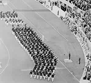 Ebenso begeistert empfängt das Berliner Publikum die französische Équipe, die dem Führer und Reichskanzler den deutschen Gruß entbietet, als sie an seiner Tribüne vorbei marschiert. Hinterher werden sie zwar behaupten, das sei nur der olympische Gruß gewesen, der zufällig genauso aussieht; aber außer den Franzosen entbieten den sonst nur die Deutschen, die Österreicher, die Italiener und die Griechen (bei denen General