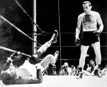 Halt, einen klitzekleinen Skandal (freilich einen mit Happy-end) will Euch Dikigoros nicht vorenthalten. Wenn wir uns an die antike Tradition des Pankration erinnern - des Kampfes auf Leben und Tod - war er vielleicht nicht einmal das, sondern nur eine [folge-]richtige Entscheidung der Kampfrichter (die damals niemand ernsthaft in Frage gestellt hat): Im Schwergewichts-Endkampf des Boxturniers trifft der Schwede Ingemar Johansson auf den US-Neger Ede Sanders, der ihn um Hauptes Länge (und mehrere Kilo Gewicht) überragt. Der Amerikaner ist in den Slums groß geworden, kein Sportler, sondern ein brutaler Schläger, der schon einen Profi-Vertrag in der Tasche und alle Vorrunden-Gegner schwer k.o. (zum Teil krankenhausreif) geschlagen hat. Sein Boxstil ist entsprechend: immer feste druff, ohne Rücksicht auf Verluste - so wollen es die Zuschauer schließlich sehen... Johansson dagegen ist ein echter Sportler, der Boxen als die edle Kunst der Selbst-Verteidigung, nicht des Selbst-Mordes versteht. Zwei Runden lang weicht er den Schlägen seines Gegners geschickt aus, dann - disqualifizieren ihn die Kampfrichter wegen Untätigkeit. Und er verliert nicht nur den Kampf, sondern wegen "Feigheit vor dem Feind" erkennen ihm die IOC-Ärsche - die ihren Kopf ja nicht hin zu halten brauchen - auch noch die Silber-Medaille ab. [Auf Leseranfragen: Ja, Dikigoros nennt hier bewußt das IOC, nicht die AIBA, die jenen Beschluß offiziell faßte; denn treibende Kraft hinter den Kulissen war einmal mehr Avery Brundage, der erst zwei Wochen zuvor zum neuen Präsidenten des IOC gewählt worden war - es war gewissermaßen seine erste Amtshandlung als solcher. Zu seinen Lebzeiten wurde jene Entscheidung nie revidiert; erst unter dem sonst viel gescholtenen Juan Antonio Samaranch durfte ein Mitglied der AIBA aussagen, daß sie damals vom IOC zu jener skandalösen Fehlentscheidung gezwungen wurden, und Johansson bekam seine Medaille nachträglich verliehen.] Ja, das ist er, der wahre olympische Geist der Antike! Aber wieder entscheiden die Götter anders: Sanders, der vermeintlich unschlagbare Gold-Medalist, boxt als Profi so weiter wie er als Amateur aufgehört hat - immer volles Risiko - und läßt sich gleich von seinem ersten ernst zu nehmenden Gegner, um nicht als Feigling da zu stehen, im Ring tot schlagen. Auch Johansson wird Profi, macht aber weiter wie als Amateur, d.h. er schluckt keine Anabolika und geht nicht ins Kraftstudio, sondern absolviert sein "Konditionstraining" abends in der Disco. Nach einigen Jahren behutsamer Aufbauarbeit gewinnt er erst die schwedische, dann die Europa-Meisterschaft (die Werbe-Manager nennen seine Rechte "Thors Hammer", aber was besagt das schon - damit hat er doch bloß Fallobst gepflückt, oder?), dann fordert er - 1959, sieben Jahre nach dem Eklat von Helsinki - den Weltmeister aller Klassen heraus, den Furcht erregenden jungen US-Neger Floyd Patterson (der in Helsinki noch so jung und leicht war, daß er "nur" die Goldmedaille im Mittelgewicht gewann). Die schwedische Regierung entblödet sich nicht, einen Antrag auf eine UN-Resolution (!) einzubringen, dieses Match zu verbieten, weil das glatter Mord sei. Der Antrag wird abgeschmiert, der WM-Kampf zwischen den beiden Olympioniken a.D. findet statt; die Wetten stehen 20:1 für Patterson.