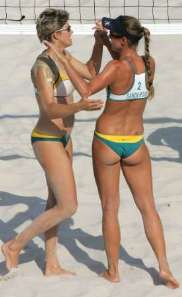 Aber während andere Völker, wie z.B. die tumpen Germanen, dennoch brav vor dem Fernseher hocken und sich die ganzen im voraus abgekarteten Spiele ansehen (viele Medaillen hat ihr NOK nicht gerade ausgehandelt), ist das den Griechen einfach zu dumm: Es ist schönes Wetter, sie gehen lieber an den Strand baden, als den Schwindel um die Medaillen und den Wucher um die Eintrittskarten zu unterstützen. Und das, obwohl das IOC die weiblichen Teilnehmerinnen z.B. im Beach-Volleyball zwingt, fast nackt anzutreten, damit auch die Voyeure auf ihre Kosten kommen: Wer ein mehr als 4 cm breites Stück Stoff auf dem Hintern hat, wird disqualifiziert.