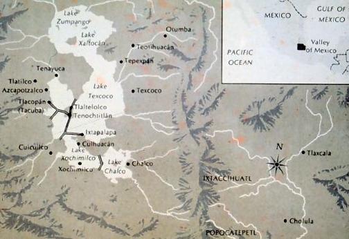 Moctezuma reagierte sofort - und wieder richtig: Die Hauptstreitmacht der Tlaxcalteken zu vernichten wäre eine Sache gewesen; aber wenn er nur die paar Mann aufhielt, die jetzt von Cortés heran geführt wurden, dann hätte er gar nichts erreicht - die wären umgekehrt und im nächsten Frühjahr wieder gekommen - vielleicht auch über die Nordwest-Route. Nein, dieses kleine Häuflein mußte er in die Falle locken und seines Kopfes berauben - seine Spione hatten sehr wohl mit bekommen, daß die Spanier untereinander alles andere als einig waren: Die meisten von Cortés' Offizieren plädierten längst für eine Rückkehr nach Kuba, denn für ihren Eroberungsfeldzug gen Westen hatten sie keine Erlaubnis, geschweige denn einen Befehl von oben. Und die einfachen Soldaten hatten bisher noch keinen Sold gesehen, geschweige denn nennenswerte Beute gemacht - auch deren Motivation, weiter zu marschieren, war auf dem Nullpunkt angelangt. Also ließ Moctezuma die Baumsperren schleunigst wieder abbauen und schickte den spanischen "Göttern" Boten entgegen, die ihnen Geschenke aus Gold und [Halb-]Edelsteinen (Türkis und Jade, für die México bis heute berühmt ist) brachten (denn sie hatten inzwischen erfahren, worauf die Spanier scharf waren - jedenfalls nicht auf Kakaobohnen) und sie herzlich einluden, in "ihre" Stadt zu kommen. Cortés wußte sicher, wie riskant es war, sich in die Höhle des Löwen, pardon des Jaguars ("Ozelotl") zu begeben. Aber er hatte nun einmal den Rubicon, pardon den Paso überschritten, und im übrigen dürfte er schon geplant haben, Moctezuma gefangen zu nehmen und damit die Macht im Aztekenreich an sich zu reißen, denn auch er hatte seine Spione, die ihm berichtet hatten, daß das Reich ohne seinen Kopf verteidigungsunfähig sei. Nachdem Cortés die hängenden Gärten von Xochimilco und den "Heuschreckenhügel" Chapultépec (über den Dikigoros