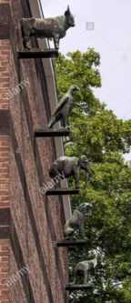 Längerer Nachtrag: Im Rückblick, als alter Mann, fragt sich Dikigoros, wie er zu einer so abstrusen Weltanschauung kommen konnte, ja wie man überhaupt zu einer Weltanschauung kommt. Um mit dem bereits erwähnten Alexander von Humboldt zu sprechen: "Am besten, indem man sich die Welt mit eigenen Augen anschaut." Ja, aber bevor man das dazu notwendige Alter erreicht hat, hat man sich sein Weltbild doch schon weitgehend gemacht und kann es allenfalls noch korrigieren. Wie, wo und wann aber wird es vorgezeichnet? Dikigoros hat mühsam in seinem Gedächtnis gekramt und glaubt jetzt, die Antwort gefunden zu haben - jedenfalls für sich persönlich: Es war in den 1950er Jahren, als sie gerade nach Bonn gezogen waren, in die Koblenzer Straße, genauer gesagt in den Teil, der heute, nach dem Tod des ersten Bundeskanzlers, "Adenauerallée" heißt und in nur 150-200 m Abstand parallel zum Rhein verläuft, zu dem die so genannten "Fährgassen" hinunter führten, auf denen man im Winter - damals waren die noch richtig kalt, und der Schnee blieb Tage und Wochen lang liegen - prima rodeln konnte. Besonders beliebt war die 2. Fährgasse, denn sie war nur leicht abschüssig, d.h. man riskierte keine allzu rasante Abfahrt und brauchte den Schlitten auch nicht so steil wieder hoch zu ziehen. Daneben stand ein Gebäude, das damals zum Postministerium gehörte. Und an dessen Rückwand, hoch über der Rodelbahn, waren einige Tierfiguren angebracht, bei denen klein Niko nicht ganz klar war, was sie bedeuten sollten.