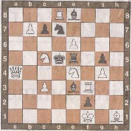 Die einzigen Figuren, bei denen alles beim Alten bleibt, sind der König und die Springer. Der erstere wird dadurch zur schwächsten Figur auf dem Brett wird - kann es ein Zufall sein, daß diese Regeländerung just in eine Zeit fällt, da die Könige aufhören, selber mit zu kämpfen? Richard III von England war 1485 der letzte, der mit der Waffe in der Hand auf dem Schlachtfeld starb. (Nein, liebe Schweden, Gustaf Adolf starb zwar bei Lützen auf dem Schlachtfeld, aber nicht im Kampf, sondern - da sind sich die Gelehrten nicht ganz einig - entweder auf der Flucht oder von den eigenen Leuten hinterrücks erschossen; jedenfalls hatte er die tödliche Kugel im Rücken :-) Die Springer sind nun nicht mehr die stärksten Figuren; gleichwohl behalten sie einen gewissen Reiz, da sie die einzigen bleiben, die über andere Figuren hinweg ziehen können. Darf Dikigoros Euch zu einem kleinen Ausflug auf das Feld des Problemschachs mit nehmen? Eigentlich hält er nicht viel davon, vor allem nicht von solchen konstruierten Stellungen, die nie aus einer echten Partie entstehen könnten - das ist pure Mathematik, die man besser den Computern überlassen sollte. Und er hält auch nicht viel von Stellungen, die eh gewonnen sind, und wo es nur noch darum geht, ob man in 2, 3, oder 4 Zügen matt setzt - was solls? Die Zahl der Züge ist - außer in gewissen Endspielen ohne Bauern - nicht begrenzt, wohl aber die Bedenkzeit - wozu also lange nachdenken und die letztere womöglich überschreiten, wenn man die Partie mit ein paar Zügen mehr auch so nach Hause fahren kann?! Manche Pfuscher liefern gar "Probleme" ab, für die es mehr als eine Lösung gibt (oder gar keine :-). Aber es gibt immer wieder mal positive Ausnahmen, und eine will Dikigoros Euch hier vorstellen, weil sie ihn selber schwer beeindruckt hat. Wahrscheinlich kennen ausgemachte Fans des Problemschachs sie schon, aber für Amateure u.a. "Nur-Schachspieler" dürfte sie eine echte Kopfnuß sein. Also baut Euer Schachbrett auf, wenn Ihr neugierig geworden seid (aber verderbt Euch nicht den Spaß, indem Ihr gleich auf die Hilfe eines Computer-Programms zurück greift - versucht es erstmal alleine):