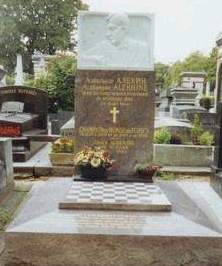 Das 49. Feld liegt in Paris: Es ist der Friedhof von Montparnasse. Der hat von allen Friedhöfen der Welt die meisten Katzen - wo sonst also könnte man den großen Katzenliebhaber Aleksandr Alëchin würdiger zu Grabe tragen? Nanu, war der nicht schon zehn Jahre zuvor in Portugal gestorben? Gewiß, aber nun besinnen sich die Franzosen, daß dort Salazar, der böse Krypto-Nazi regiert, und daß Alëchin doch eigentlich gar kein Nazi war, sondern vielmehr der einzige Franzose, der im 20. Jahrhundert Schach-Weltmeister wurde, also folglich ein guter Demokrat gewesen sein muß. Und überhaupt gibt es jede Menge Dinge, von denen man im Jahre 1956 ablenken muß: England und Frankreich, die beiden Staaten, die den Zweiten Weltkrieg angezettelt und "gewonnen" haben, versuchen ein letztes Mal, Großmacht-Politik zu treiben, und um unter Beweis zu stellen, daß sie den Krieg nur angefangen hatten, um den armen Juden zu helfen, tun sie diesmal wieder das gleiche: Im Verein mit Israel überfallen sie Ägypten, wo, pardon weil der böse Nasser den Suez-Kanal verstaatlicht hat, den sie immer noch als ihr gemeinsames Baby ansehen: Schließlich hat ihn ein französischer Ingenieur geplant und ein englischer Jude finanziert (aber das ist eine andere Geschichte); also kann man doch nicht zulassen, daß so ein daher gelaufener Putschist... Aber nun fällt ihnen unerwartet jemand in den Rücken, mit dem sie gar nicht gerechnet haben, und zeigt ihnen, wer in Wirklichkeit den Zweiten Weltkrieg um die Weltherrschaft geführt - und gewonnen - hat: U.S.-Präsident Eisenhower. Engländer und Franzosen müssen kleinlaut wieder abziehen; und unterdessen sind die Sowjet-Russen - die anderen "Gewinner" des Zweiten Weltkriegs - in Ungarn einmarschiert (daran hat sie niemand gehindert) und lachen sich ins Fäustchen. Ach so - eine Schach-Olympiade war auch noch - die haben sie freundlicherweise die Ungarn gewinnen lassen...