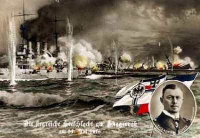 Ja, Dikigoros wiederholt sich hier ein letztes Mal; aber Euch ist sicher aufgefallen, daß er diesen Satz nicht bei allen Schlachten zitiert hat; doch zieht daraus bitte keine falschen Umkehrschlüsse: Manchmal besteht ein solcher Heldensagen-Stoff bei näherem Hinsehen bloß aus einer unverschämten Menge Glück, das nicht der Tüchtige, sondern der Tollkühne, ja der Dummdreiste hat, möge er nun Nelson, Tegetthoff oder Prat[t] heißen. Aber wir wissen ja spätestens seit Navarino, daß viel wichtiger als Verlauf und Ausgang einer Schlacht, zumal einer Seeschlacht (bei Landschlachten ist die Gefahr der Nachprüfung doch erheblich größer, denn erstens könnte jemand zugeschaut haben, und zweitens bleibt ja meist ein Schlachtfeld zurück, das nicht im Boden versinken kann wie Schiffe im Meer) ihre propagandistische Auswertung ist. Sowohl die englische Regierung als auch die deutsche Reichsleitung beeilten sich, das Treffen ihren Untertanen als großen Sieg zu verkaufen - in Großbritannien ist der 31. Mai als "Jutland Day" noch immer ein Feiertag (wenngleich kein "Bank Holiday"); in Deutschland wurde er immerhin bis 1944 als "Ehrentag der deutschen Flotte" bzw. "Skagerraktag" gefeiert.