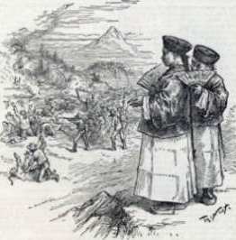 Karikatur aus dem Chinese Satirical Diplomatist. Die Original-Bildunterschrift