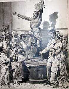 Bis auf eine, und da muß Dikigoros etwas weiter ausholen: 100 Jahre zuvor hatten die USA noch weitgehend vom Export landwirtschaftlicher Erzeugnisse gelebt, vor allem von Tabak und Baumwolle. Beides war Knochenarbeit; und da die Weißen der USA entweder zu faul oder zu fein dafür waren (oder tatsächlich zu schwach?), hatten sie Neger-Sklaven aus Afrika importiert. Das war bequem, und das war billig. (Dikigoros spart sich Ausführungen darüber, wie sehr er jene Leute ob ihrer vermeintlich billigen Bequemlichkeit verachtet. Ist es wirklich lebensnotwendig, zu rauchen oder Tabak zu kauen? Und konnte und kann man Baumwolle anderswo auf der Welt nicht auch ohne Sklaven anbauen?) Aber Mitte des 19. Jahrhunderts hatten sich die wirtschaftlichen Verhältnisse gewandelt: Mit industriellen Erzeugnissen, wie sie in den Nordstaaten der USA hergestellt wurden, ließ sich auf dem Weltmarkt viel mehr Geld verdienen (wenn man nur den Freihandel durchsetzen würde statt der albernen Schutzzölle) als mit den Tabak- und Baumwoll-Plantagen der Südstaaten. Und "Sklaven" wurden allmählich ein teurer Luxus: Wenn sie alt und krank wurden, mußten sie weiter mit durch gefüttert werden; einen Billiglohn-Arbeiter in den Fabriken des Nordens konnte man dagegen, wenn er nicht mehr arbeitsfähig war, auf die Straße setzen und durch einen noch billigeren Einwanderer ersetzen. Über diese beiden Fragen - die Abschaffung der Schutzzölle und der patriarchalischen Arbeitsverhältnisse auf Lebenszeit - kam es zum amerikanischen Bürgerkrieg, dem ersten totalen Krieg der Neuzeit. Der Norden, die Union, siegte und vernichtete nicht nur den Staat der Konföderierten, sondern auch ihre Plantagen. Die Schwarzen wurden "befreit", d.h. sie wurden in die (Schein-)Selbständigkeit entlassen, mit der sie politisch nichts anfangen konnten und die ihnen wirtschaftlich nur Nachteile brachte; und die cleveren Nordstaatler verherrlichten diese ihre Heldentat mit einem schönen Denkmal, das auf der Weltausstellung enthüllt wurde: Es zeigt einen Neger-Sklaven, der seine von Ketten befreiten Arme hoch reckt. Dieses Problem glaubte man also gelöst zu haben - denn was 100 Jahre später sein würde, fragte noch niemand.